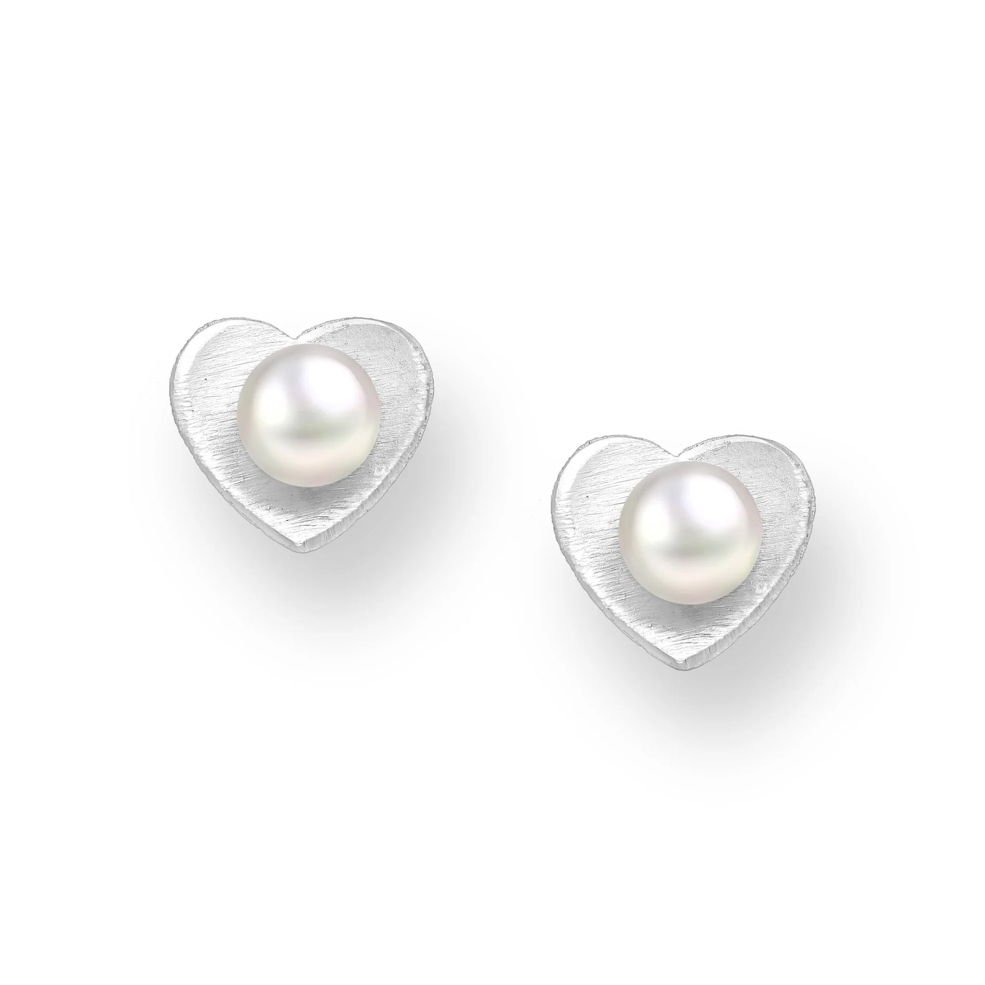 Pearl and Sterling Silver Heart Stud Earrings
